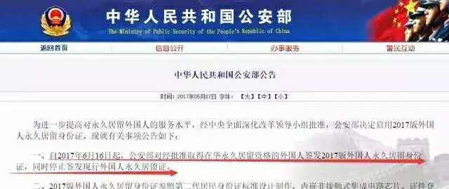 2017版外國人永久居留身份證已開始使用,6月16日起,公安部對(duì)經(jīng)批準(zhǔn)取得在華永久居留資格的外國人簽發(fā)2017版外國人永久居留身份證,同時(shí)停止簽發(fā)現(xiàn)行外國人永久居留證。